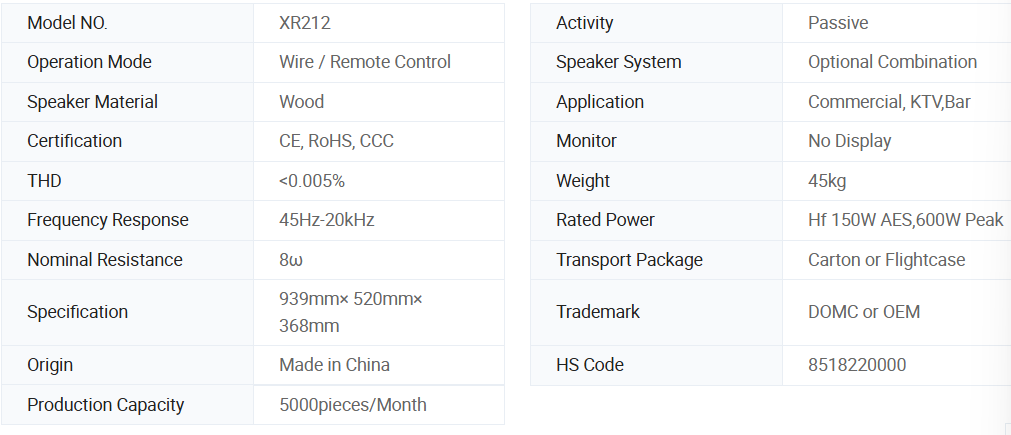 The Domc Xr212 Line Array Professional Audio Equipment for MID-Large Venues and Mobile Sound Reinforcem